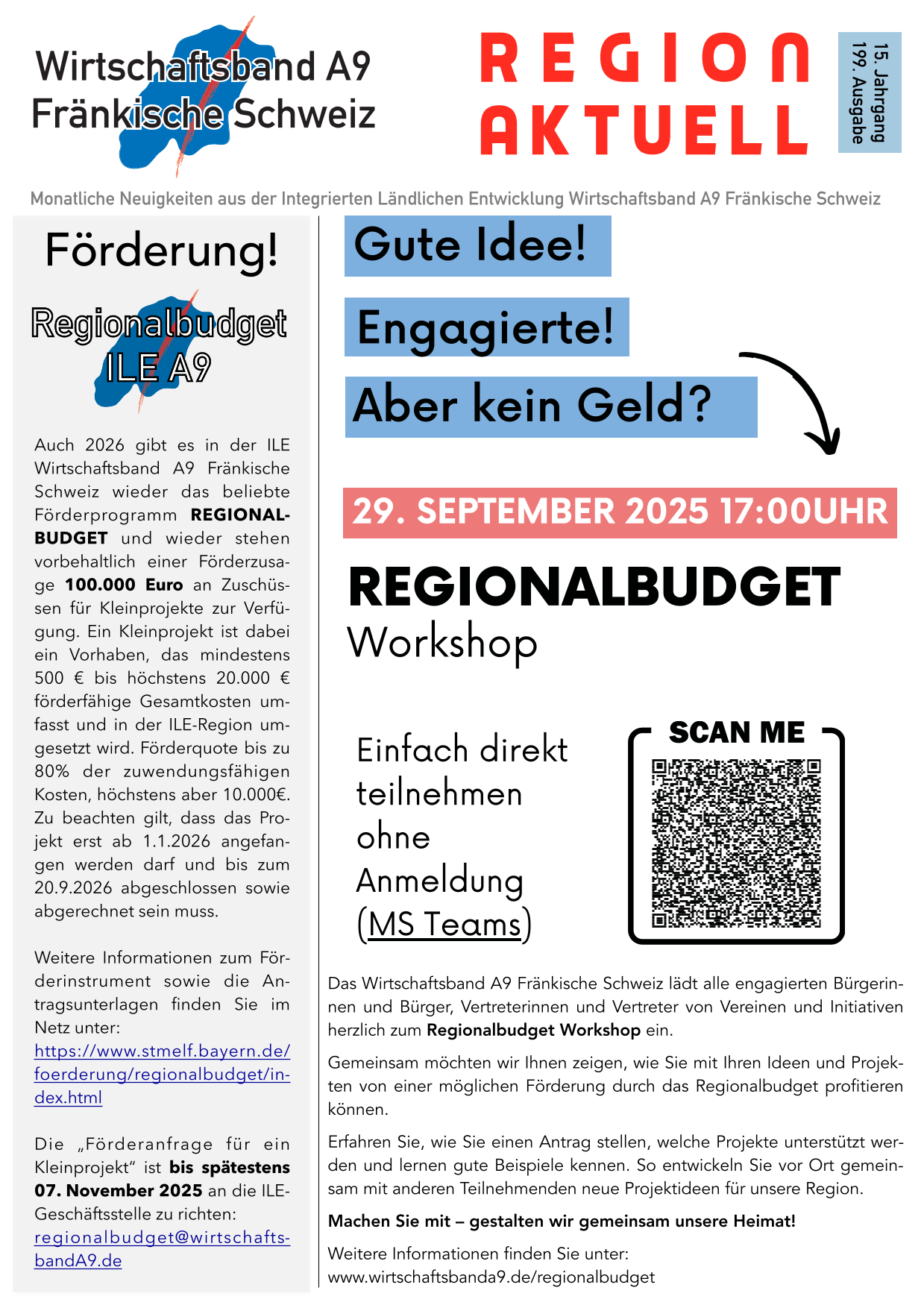 Neues aus der ILE Wirtschaftsband A9 Fränkische Schweiz e.V.: REGION AKTUELL September 2025 (199. Ausgabe)