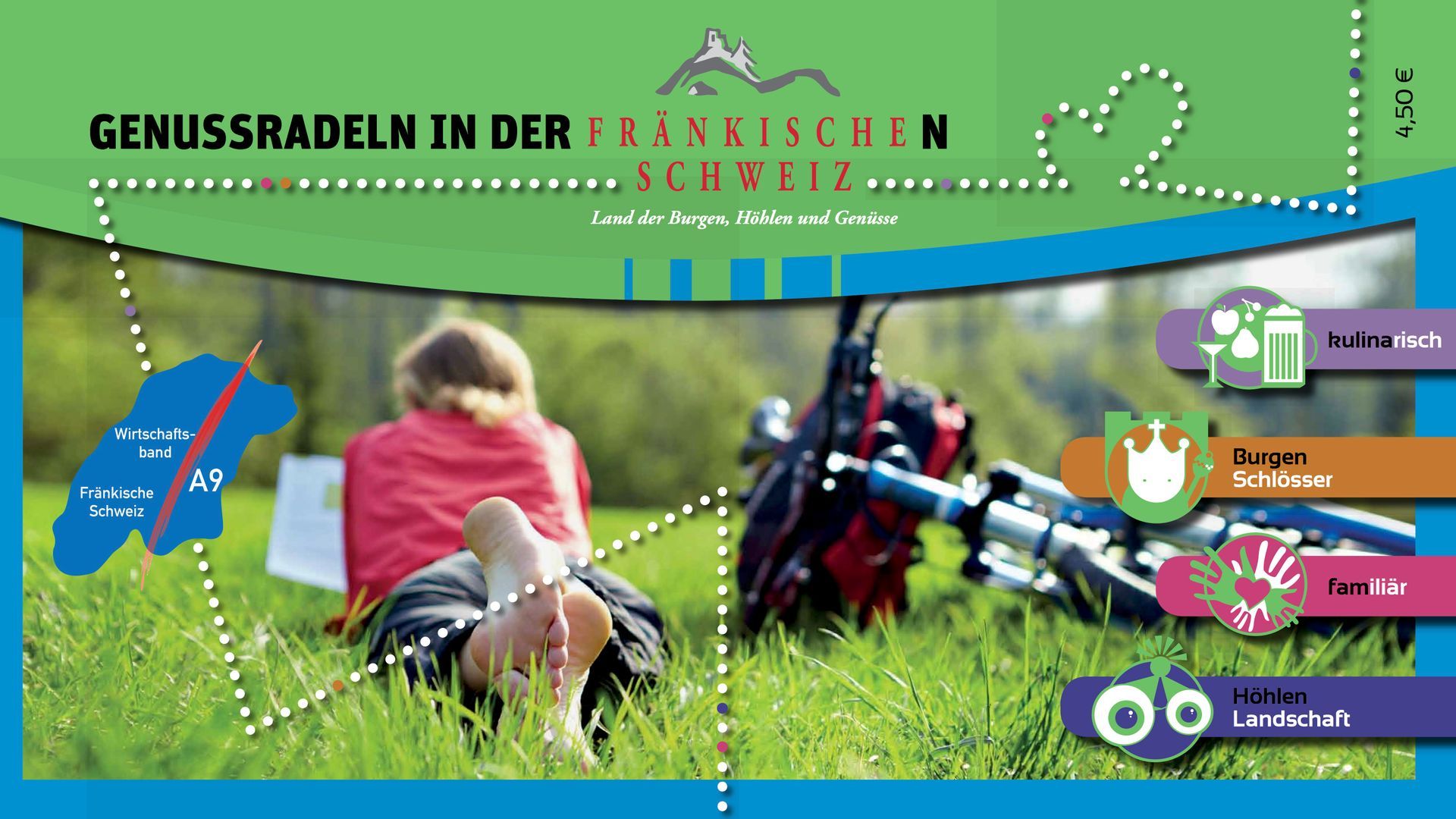 Das Ergebnis ist unsere Broschüre "Genussradeln in der Fränkischen Schweiz" mit 22 Rundtouren von 15 bis 40 km zwischen Nürnberg und Bayreuth. Das Tourenheft ist in allen Buchhandlungen unter der ISBN 978-3-00-045629-9 erhältlich.